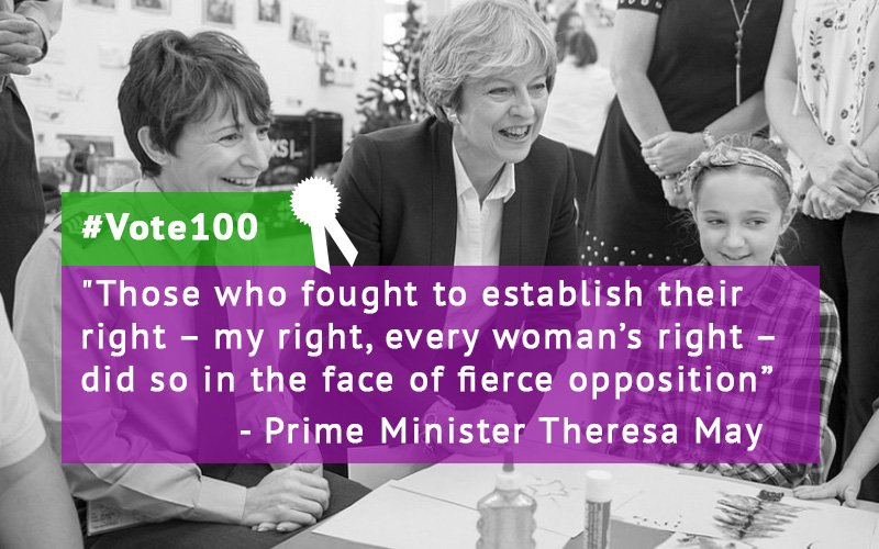 In a speech to mark the centenary of women’s right to vote, the Prime Minister is celebrating the heroism of the suffrage movement which transformed British democracy #Vote100 #100years #StillMarching pic.twitter.com/ksiTtm7sJD